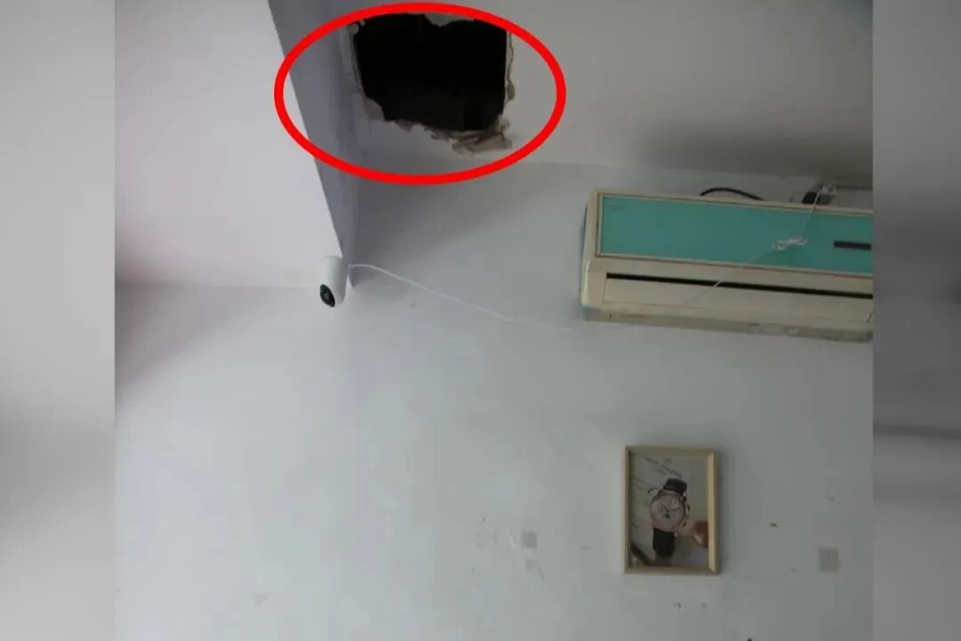 瑞安警方迅速展开调查。经现场勘查发现,被盗店铺位于落地民房的一楼店面,店铺大门虽然没有被破坏,但在店内天花板上却有一个大洞,而房子后门直通二楼出租房的楼梯间夹层也有一个大洞。