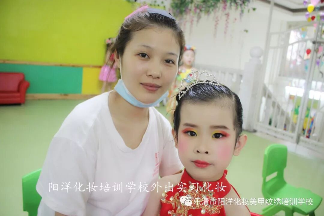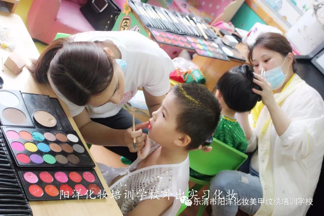 而乐清阳洋时尚化妆美甲纹绣培训学校的学员们通过实习,