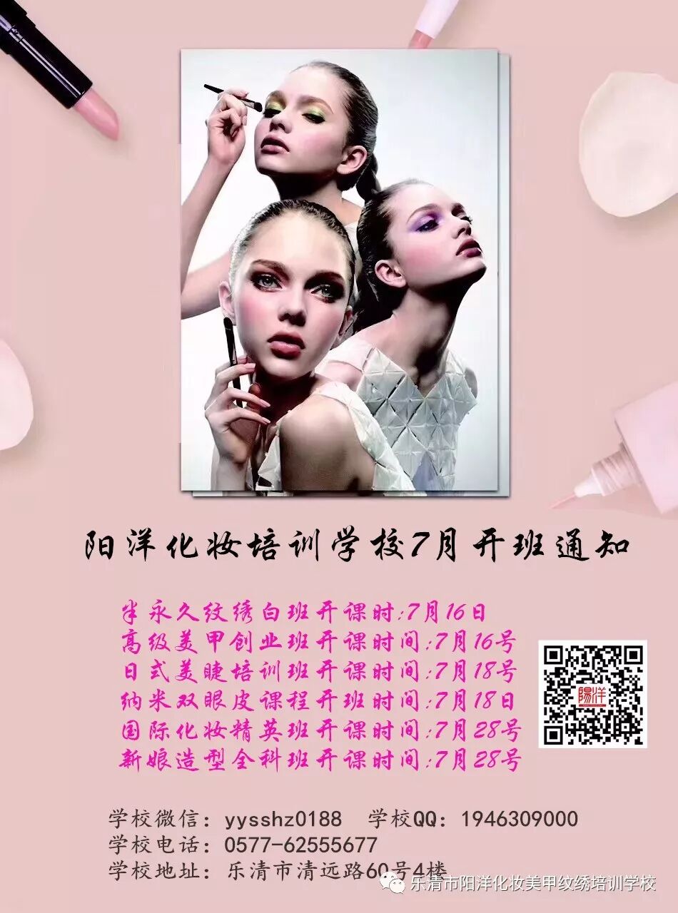 总校地址:乐清市清远路60号4楼(田野中餐厅楼上) [ 此帖被阳洋化妆学校在2018-07-08 14:21重新编辑 ]