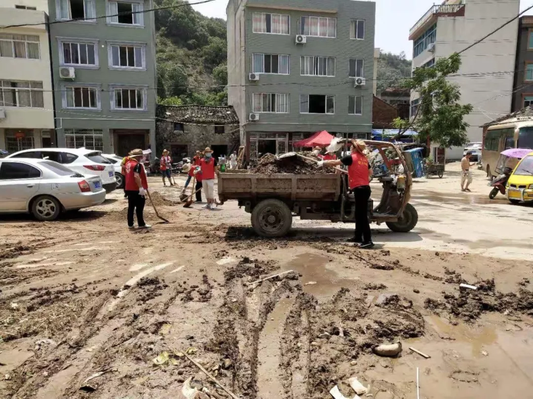 虹桥镇妇联组织巾帼志愿者奔赴芙蓉开展灾后环境卫生整治,现场的女同志们头顶骄阳烈日,发挥不怕脏、不怕累的精神,坚持连续作战,认真清理垃圾淤泥,为恢复芙蓉镇生产生活环境贡献了一份力量。