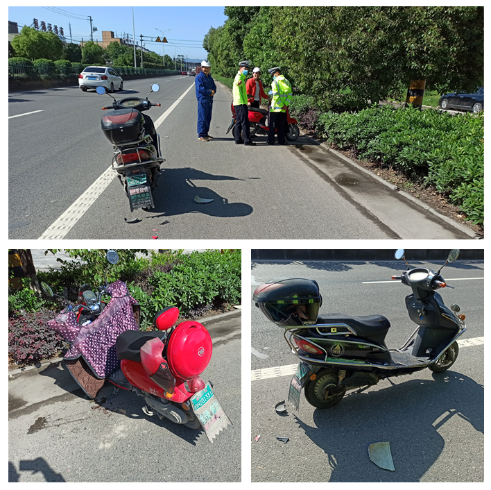 当天上午7点55分,邱某骑着电动车途经兰花桥路口时,因为没有及时关注路面情况,追尾撞上了前面正常行驶的电动车,导致电动车侧翻,致使邱某的头部直接撞向地面。由于事发时邱某没有佩戴安全头盔,这一撞造成其脸部严重擦伤。