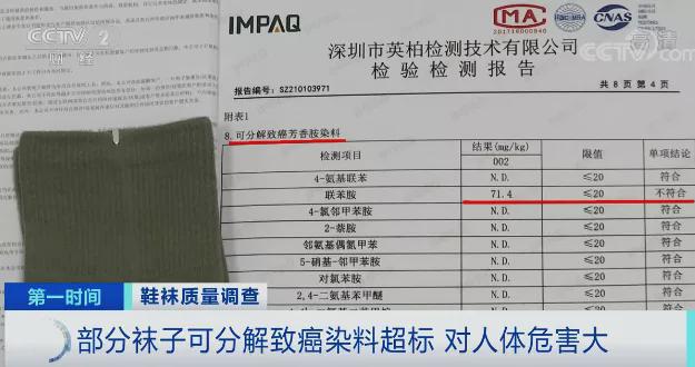 纯棉袜子一般比较受大家欢迎,因为它吸汗、舒服、透气性也好。除了在实体店购买,在电商、直播平台上也很容易就能购买。然而,江苏省市场监管局日前对95批次袜子进行监督抽查,结果显示有16批次不合格,其中一些电商和直播平台销售的袜子,存在棉含量严重不足、纤维含量不合格、部分染料致癌物超标等质量问题。江苏:监管部门抽查95批次袜子 16批次不合格△央视财经《第一时间》栏目视频记者调查发现,一些电商和直播平台的店铺,主播们在销售袜子时经常主打纯棉全棉等卖点。 某直播平台这家店铺销售的一款袜子,主播宣称是纯棉加厚的,然而记者发现在江苏省市场监督管理局最新公布的袜子抽查结果中,这款袜子的纤维含量和甲醛含量等两项指标不合格,检测结果显示,这款主播宣称纯棉的袜子产品标称棉含量为85%,实测棉含量为65%,30%以上的聚酯纤维含量则没有标注,这款袜子是抽查中不合格项目最多的样品。 采访中记者了解到,江苏省市场监管局日前对95批次袜子进行监督抽查,结果显示有16批次不合格,不合格率为16.8%。记者在检测现场看到纤维含量不合格,是这次袜子抽查发现的最大质量问题,所有不合格的16批次袜子这个指标都不合格。 南京市质检院江苏省户外中心高级工程师 阎燕:比如这个袜子,标的里面含有再生纤维素纤维,但实际上我们检测的时候是没有。 还有另外一款,标注里面含有粘胶,但是实际上检测出来里面有腈纶,没有粘胶。采访中记者注意到,一些不合格袜子标称的纤维含量和实际检测结果完全不同。 大加利(太仓)质量技术检测中心纤维含量组主管 胡南:这两款袜子都标称棉含量为80%,实际检测发现棉含量为零,一点棉都没有,实际成分96%以上都是聚酯纤维。部分袜子可分解致癌染料超标 对人体危害大在江苏省市场监督管理局的这次抽查中,还发现一些袜子的甲醛含量超标、可分解致癌芳香胺染料超标。 深圳市英柏检测公司工程师 吴浩:这次在某平台抽了4个批次,其中就有一个批次是可分解致癌芳香胺染料的含量超标。记者查阅检测报告时看到,国家相关强制性标准规定,可分解致癌芳香胺染料不得超过20毫克/千克,这款从直播平台购买的袜子,可分解致癌芳香胺染料达71毫克/千克。 深圳市英柏检测公司工程师 吴浩:化学检测,只要检出就说明它使用了这个物质,染到袜子上在使用当中是很难被洗掉的,消费者在穿着的过程当中,这个染料可能会通过皮肤,通过呼吸道,通过肠胃道进入到人体,富集以后可能会致癌。经过检测,16批次不合格的袜子中,标称为辽阳县新星针织厂生产的“益茈轩”牌棉袜,有两项指标不合格,包括纤维含量和可分解致癌芳香胺染料等项目;标称为金华市名派针织品有限公司生产的“锦都名派”牌袜子,有两项指标不合格,包括纤维含量和甲醛等项目;这两款从直播平台购买的袜子,是这次抽查中发现不合格项目最多的样品。记者梳理抽查结果时看到,电商和直播平台的不合格率明显高于生产企业和实体店,统计显示,电商和直播平台购买的20批次样品,有6个批次不合格,不合格率达30%。 采访中,记者注意到,某电商平台销售的这款“男士/女士纯棉袜”,售价25.8元一盒,六双。店家宣称热卖13万盒,用50元一公斤特级棉纱生产,江苏省监督抽查的检测结果却显示,纤维含量不合格,其中,棉含量仅为4.9%,聚酯纤维超过56%,粘纤超过35%。也就是说,这款袜子的棉含量连5%都不到,90%以上都是化纤材料。这次抽查不合格结果,江苏省市场监管局已经通知相关的销售店铺、生产企业和电商平台,要求下架和整改不合格产品,然而,截至发稿,记者在这家店铺看到,这款不合格袜子,依然在售。 来源:央视财经