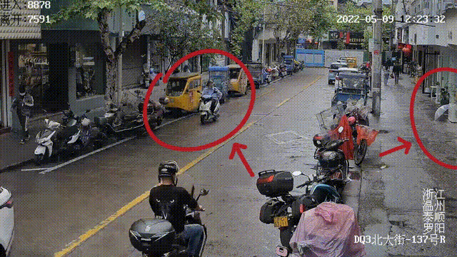 5月9日在泰顺县罗阳镇北大街一场紧张的街头追捕正在进行泰顺县公安局罗阳派出所的一名辅警为防止嫌疑人逃跑将其当街抱摔牢牢控制住嫌疑人最终将嫌疑人绳之以法