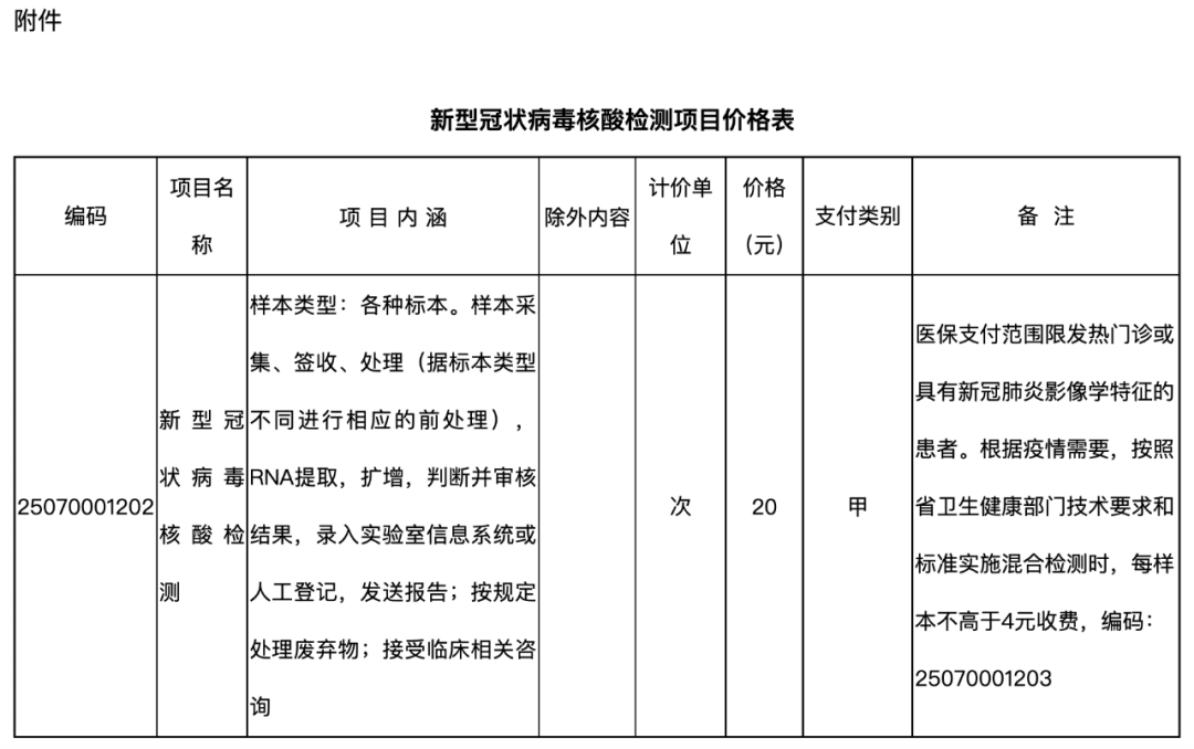 5月13日,浙江省医保局发布关于进一步降低新型冠状病毒核酸检测项目价格的通知,自2022年5月16日起,新型冠状病毒核酸检测价格调整为20元/次;新型冠状病毒核酸混合检测价格调整为每样本4元。