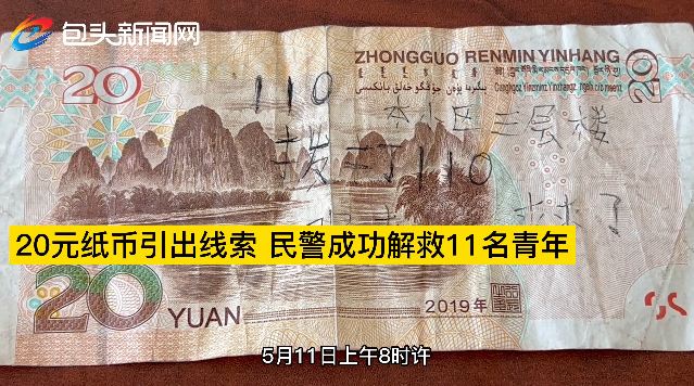 近日,内蒙古包头一孩子捡到一张写着求救信息的20元纸币随后立即报警