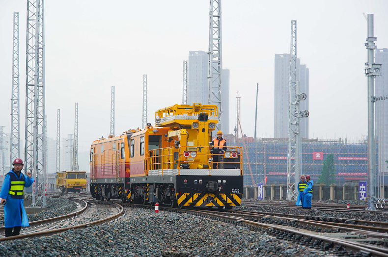 此次装车的工程车共计3辆,包括2辆重型轨道车和1辆接触网作业车。其中重型轨道车是“大马力”“大吨位”的牵引动力车,主要用于后续到段的市域动车组的牵引调车和救援作业,也可为轨道线路或供电设备施工维修提供牵引动力。接触网作业车则是轨道线路的“救护车”,主要为沿线接触网日常检修、抢修提供便利的回转作业平台和放线装置。