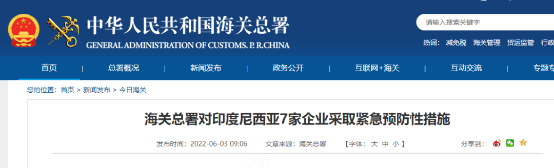 海关总署对印度尼西亚7家企业采取紧急预防性措施
