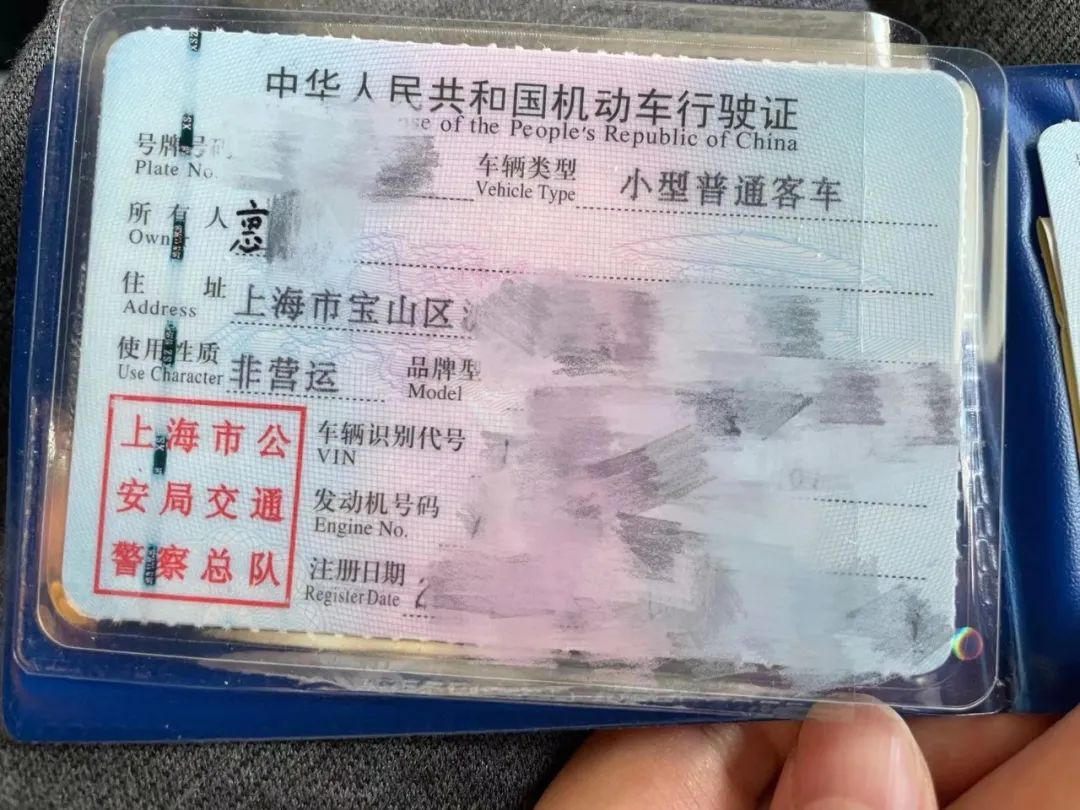 车辆行驶证上的姓氏是手写的
