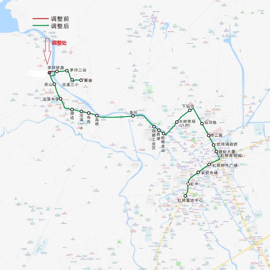 因茅垟村溪北大桥已验收通车,为方便广大市民出行,自2022年6月8日起,乐清公交优化调整虹桥片区360B黄塘线公交线路走向,具体调整内容如下: