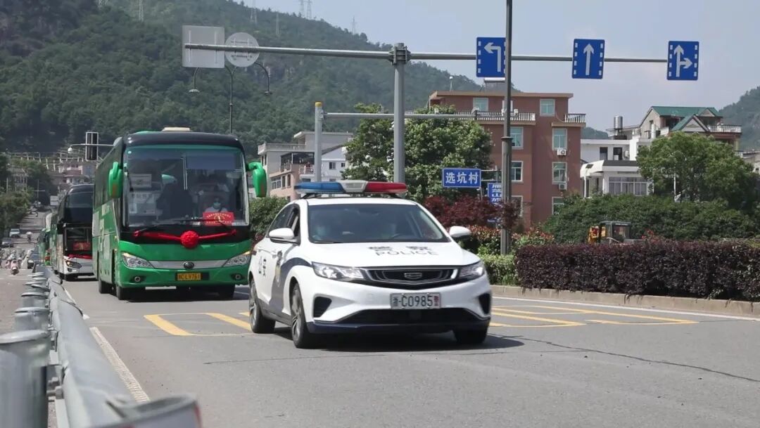 △400余名住在乐清市大荆山老区的学生在大荆交警的一路护送下,前往乐清市区参加高考。一辆车牌尾号为“985”的警车为车队开道护航,希望为考生们讨个好彩头,都能考上理想的大学。