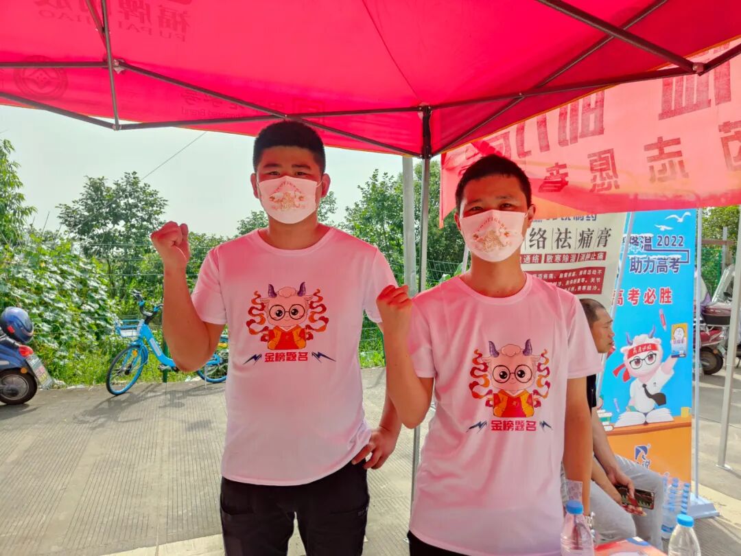 △志愿者穿金榜题名的T恤,为孩子们加油打气。
