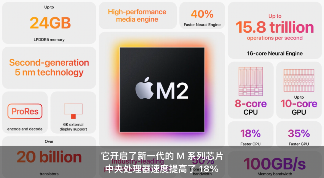 今天,苹果正式发布了M系列自研芯片家族的新成员M2芯片。