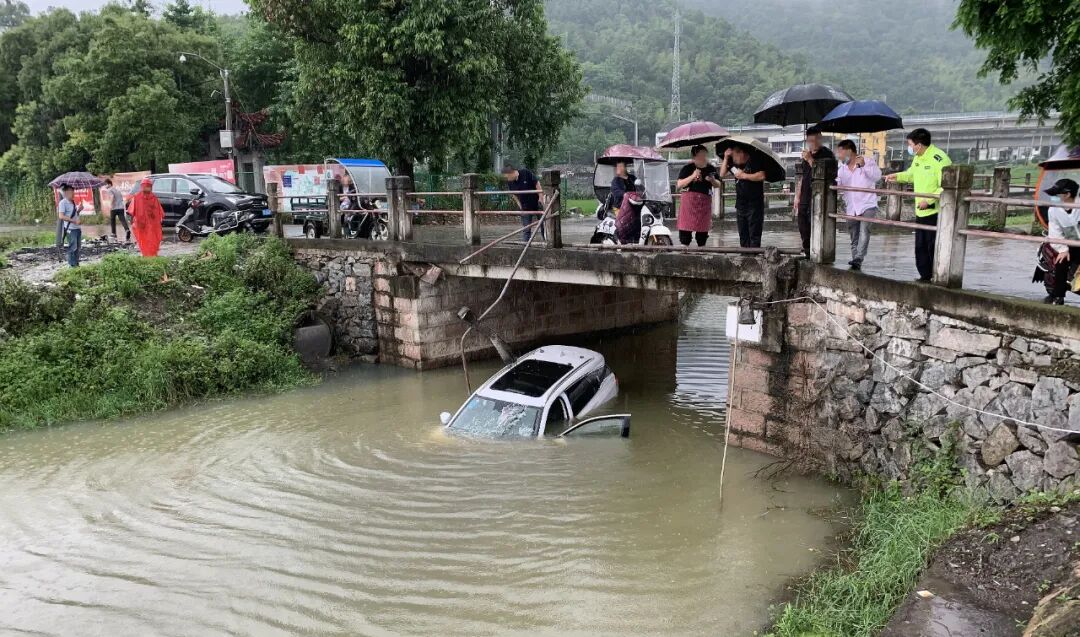 当天上午,淡溪镇村龙川村行驶至村口桥面路段时,一车辆突然撞毁桥边护栏冲入河道。交警赶到现场后看到,村口的桥梁是一座老桥,桥面两侧设有石柱和铁管组成的护栏,现场一侧护栏已经被撞毁,一辆白色新能源轿车正泡在河水里,驾驶室车门敞开着,车辆还处于启动状态,雨刮器还在来回摆动。