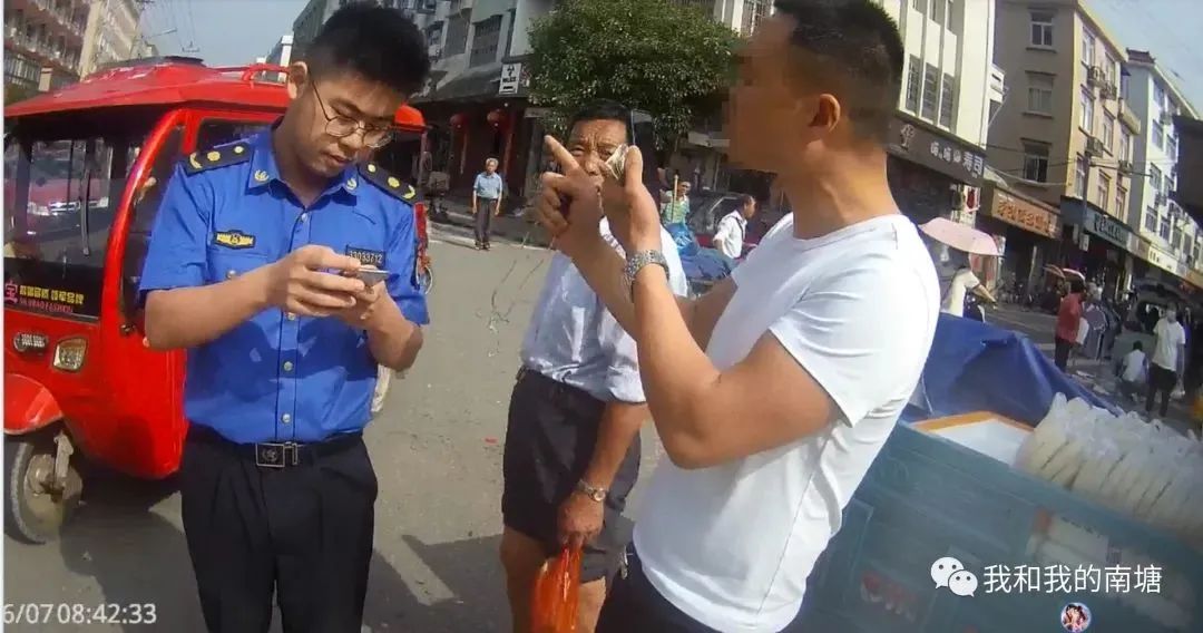 据了解该摊贩是因为2个月前因屡次占道经营被南塘执法中队暂扣了物品(喇叭),因未到中队进行处理,物品还暂扣在中队,今天故意摆在人行横道,刁难执法人员。