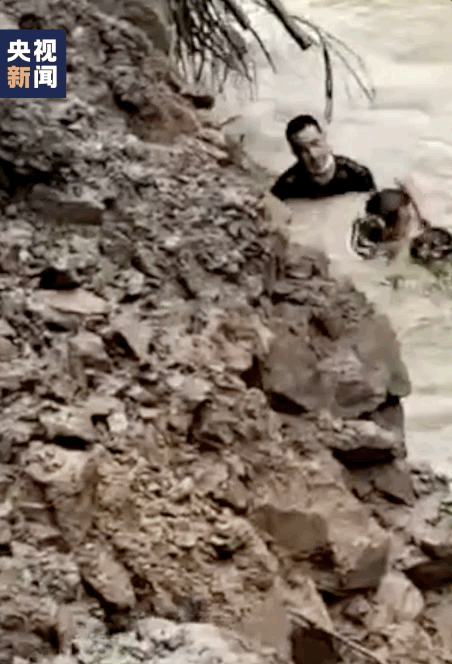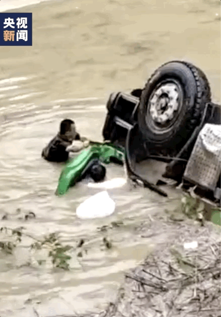 两名群众跳入河中 奋力拉开了水中的车门……