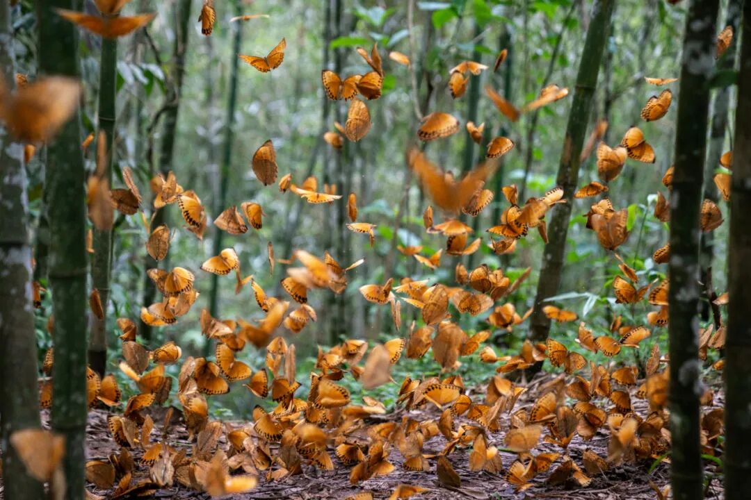 数亿枚卵发育成虫 破蛹后羽化成蝶 在幽幽山林间、潺潺流水边翩飞起舞 仿若一片“蝴蝶的海洋”…… 近日 中国·红河蝴蝶谷的箭环蝶进入集中爆发期形成一道世界罕见的生态奇观 6月9日在中国·红河蝴蝶谷拍摄的箭环蝶。新华社记者 胡超 摄中国·红河蝴蝶谷 位于云南省金平苗族瑶族傣族自治县 马鞍底乡 每年春末夏初 都会发生“蝴蝶大爆发” 箭环蝶幼虫 在短时间内大量化蛹后 羽化成蝶 形成漫天飞舞的季节性景观  1亿多只的蝴蝶 是如何统计出来的? 据蝴蝶谷博物馆馆长杨镇文 介绍蝴蝶监测员 对蝴蝶谷内23处观察地 蝴蝶幼虫和蛹进行观测 经过抽样观察预估今年爆发的蝴蝶总数在1亿只以上 6月9日在中国·红河蝴蝶谷拍摄的箭环蝶。新华社记者 胡超 摄据悉 爆发期将持续至7月 这里共有320余种蝴蝶 包括中国最珍稀的金斑喙凤蝶 中国最原始古老的棒尾喙蝶 中国最大的金裳凤蝶 中国最小的长腹灰蝶 …… 6月9日在中国·红河蝴蝶谷拍摄的金裳凤蝶。新华社记者 胡超 摄这里常年温暖湿润 森林植被茂密 有着适合蝶类生存的基础生态环境  近年来 金平县出台蝴蝶谷保护管理条例 邀请业内专家学者开展科考调查 保护和研究当地的生物多样性 保护森林、保护水源、保护蝴蝶 已成为当地群众的自觉行为 被写进了村规民约 绿水青山就是金山银山保护自然自然才会给我们最美的馈赠 来源 | 新华社