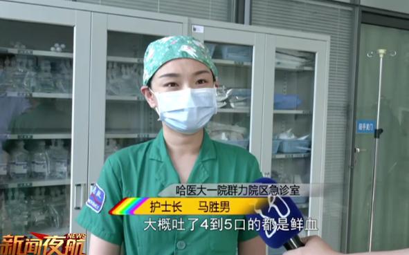 据黑龙江网络广播电视台《新闻夜航》报道,近日,哈医大一院群力院区急诊室内出现了一名白衣男子,只见他佝偻着腰,刚进画面,就开始吐血......