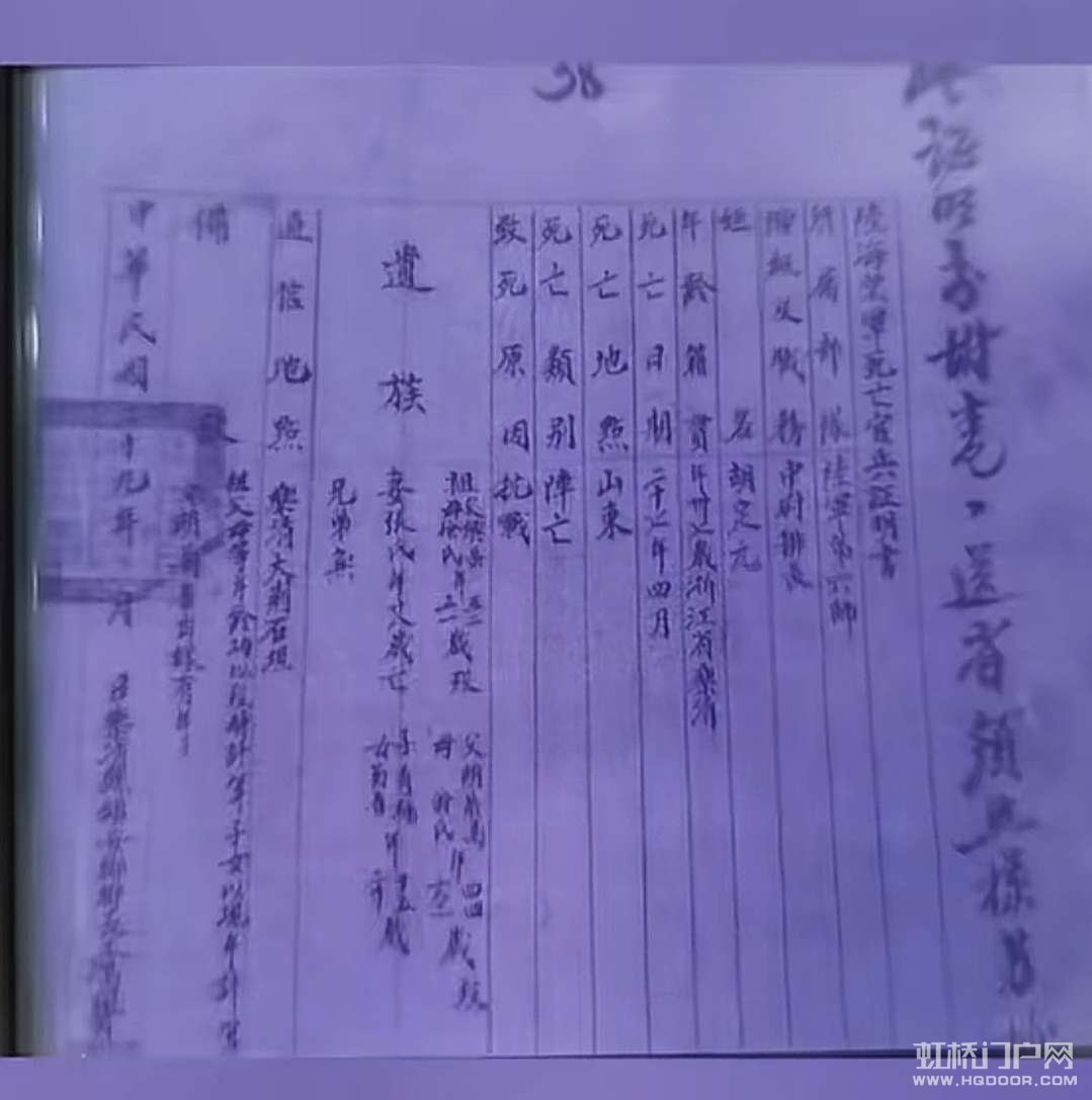 通过墓碑留下的线索,多方打听在乐清大荆镇当地的政府档案馆和村里胡氏族谱用了一天时间找到了这名抗战先烈消息。