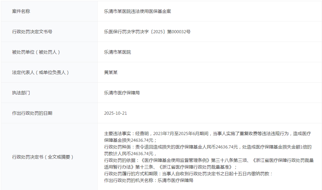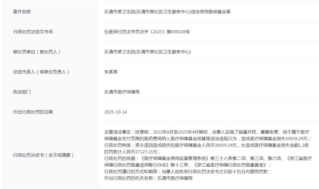 近期乐清多家卫生院 / 社区卫生服务中心,因为违法使用医保基金被处罚了!