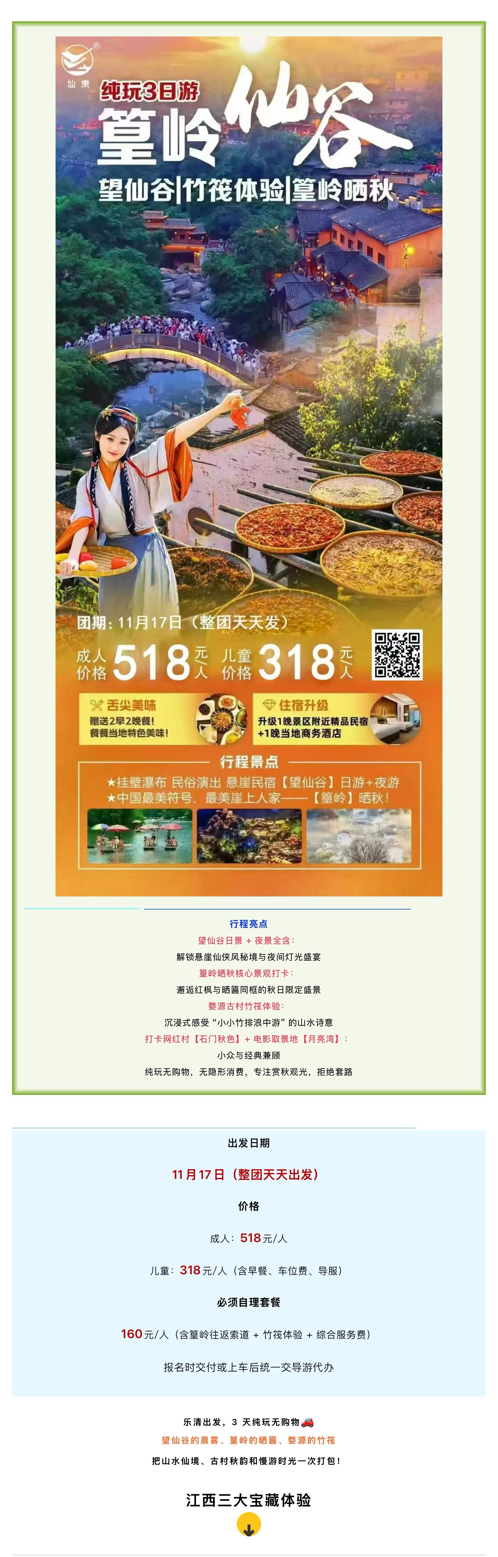 [周边民情]秋日限定!518 元解锁江西 3 大宝藏体验,纯玩 3 日不绕路! [复制链接]