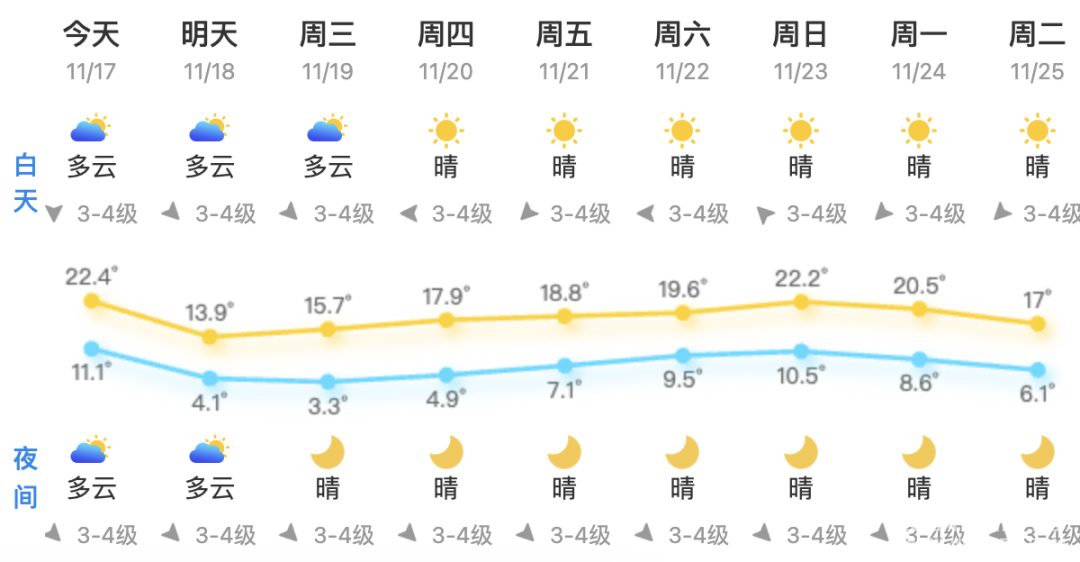 乐清今天起寒潮强势来袭!日平均气温骤降 9~11℃,降温幅度显著。最低温将在 19 日探底:平原地区 2~5℃,山区低至 0℃左右(局部有薄冰),高山地区 0~-3℃(局部有冰冻),寒意十足。同时,17 日至 19 日沿海海面将出现 8~10 级偏北大风,江湖水面和沿海平原部分地区有 6~8 级阵风,需警惕大风影响。