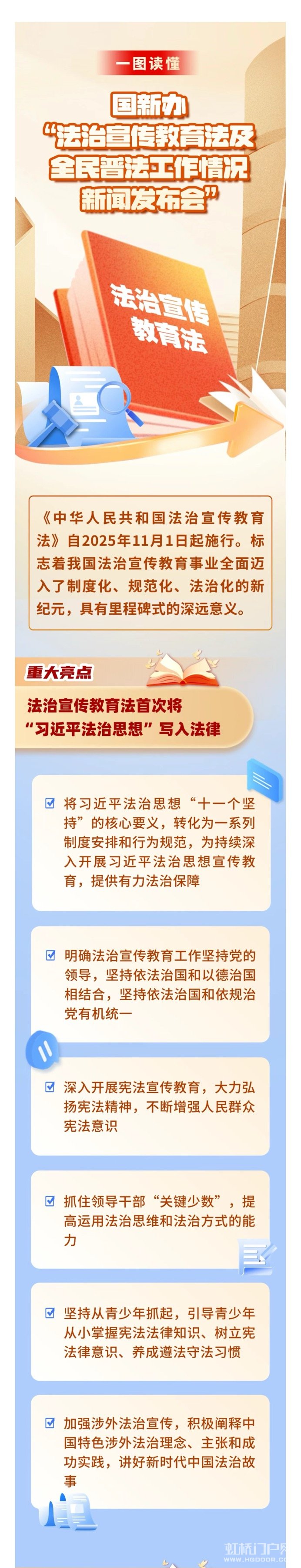 2025年9月12日,十四届全国人大常委会第十七次会议表决通过了《中华人民共和国法治宣传教育法》,该法于2025年11月1日起施行。1