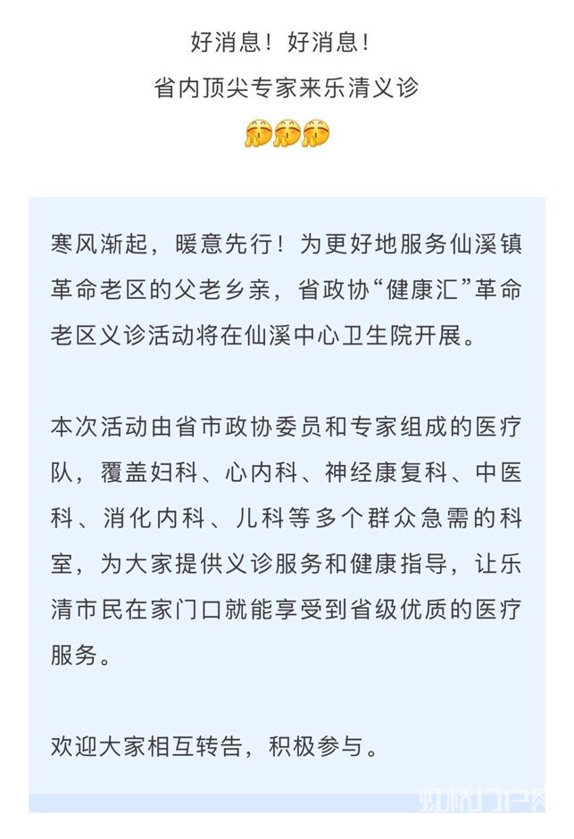 [周边民情]好消息!好消息!省内顶尖专家来乐清义诊啦~ [复制链接]
