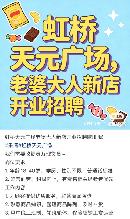小红书上有人已经在招老婆大人的收银员了,听说在天元广场外面一楼,目前还没在天元外街看到什么相关的选址点