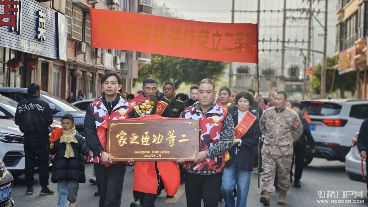 2月3号,乐清市人武部、退役军人事务局联合为仙溪余祥健、白石钱益峰两位现役军人家庭送二等功喜报,现场锣鼓喧天、还有好多乡亲过来围观祝贺。两个人因2025年度表现突出荣立二等功,家属和本人均表示将继续支持国防、在立新功。当地近年持续涌现李工军人,彰显拥军优属传统与青年报国的热情
