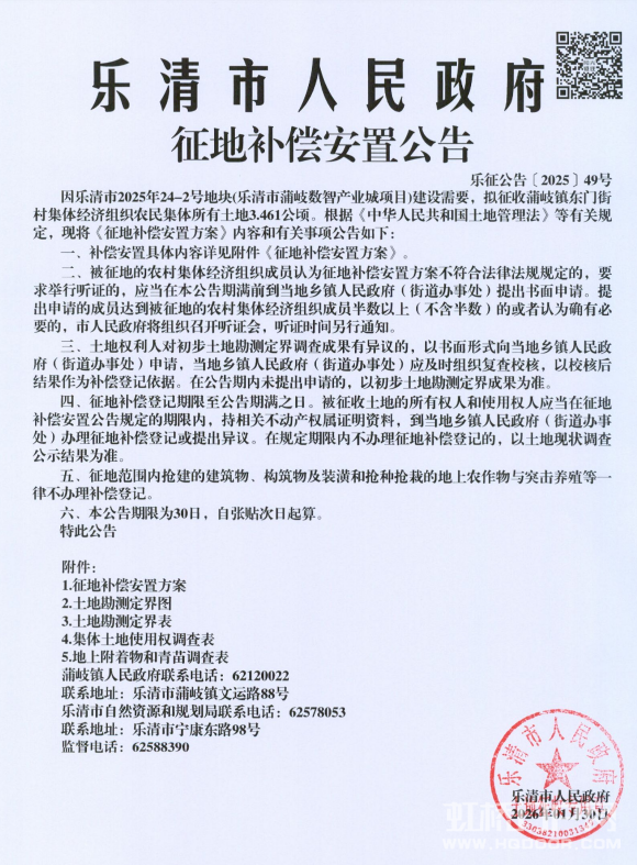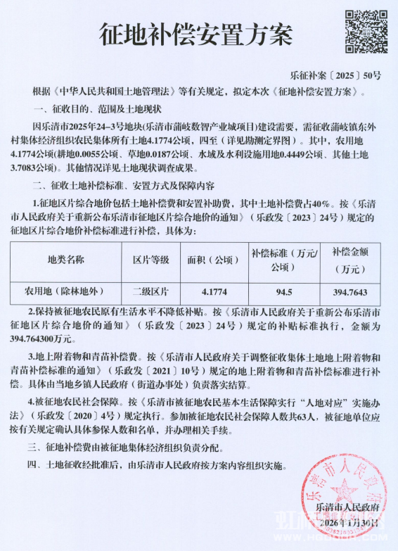 蒲岐镇这 2 个村的征地补偿公告出来了