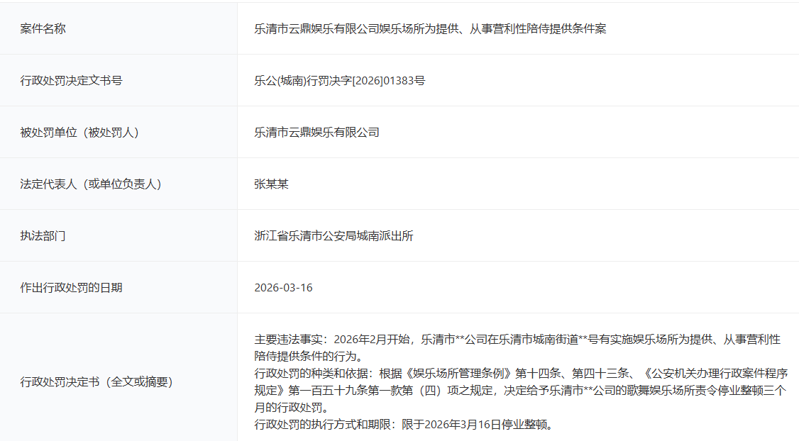 提供有偿陪侍!乐清这家 KTV被停业!